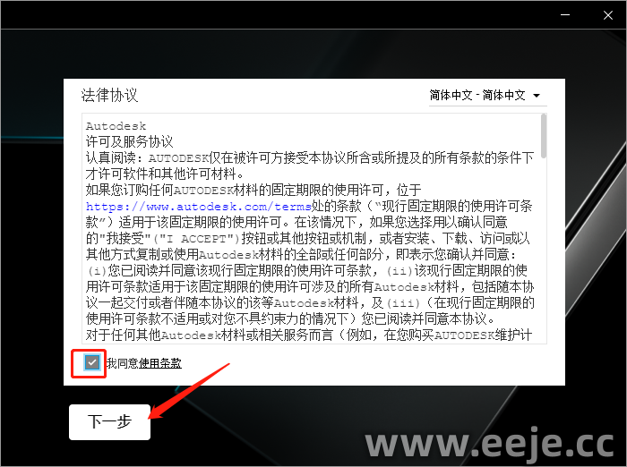 5、打勾【我同意使用条款】,再点击【下一步】。
