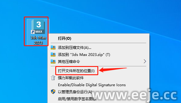 13、回到桌面鼠标右键【3ds Max 2023软件】,选择【打开文件所在的位置】。