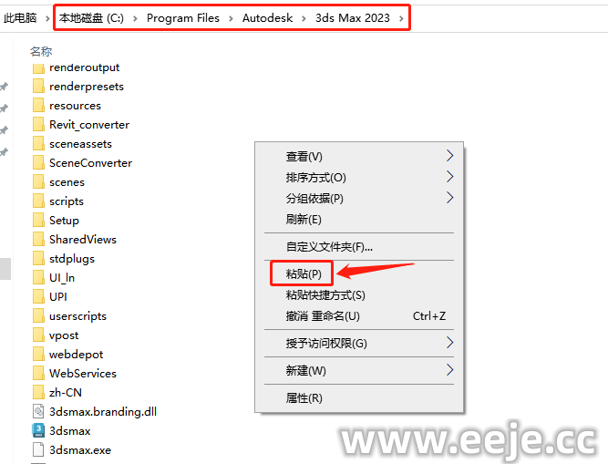 14、把刚复制的【3dsmax】文件,在空白处鼠标右击【粘贴】进去。