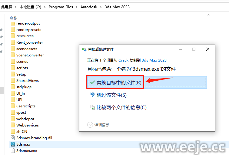 15、点击【替换目标中的文件】。