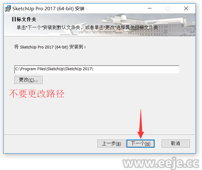 5、点击【下一个】默认安装在C盘,(要安装到别的盘点击【更改】选择自己要安装的位置)我这里就不改了点击【下一个】(建议不要更改)。