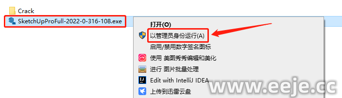 2、鼠标右击【SketchUpProFull-2022-0-316-108】点击【以管理员身份运行】。