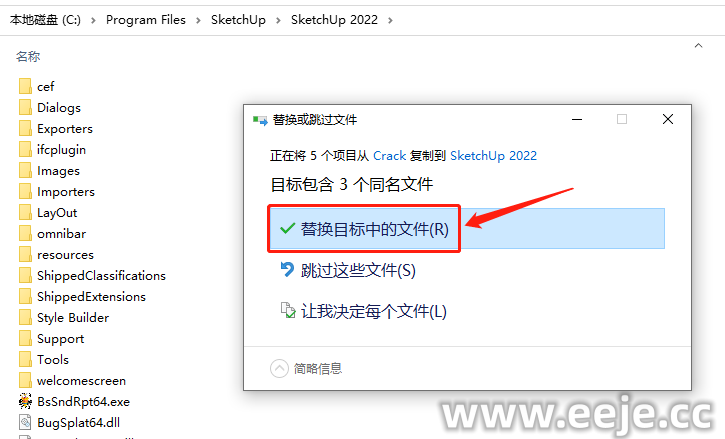 10、点击【替换目标中的文件】。